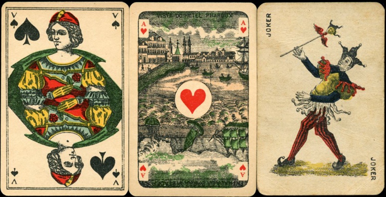 Belgian-Genoese pattern with advertising cards and jokers. Printed by