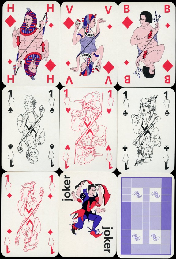 good condition, no joker, no box. Still, a RARELY found deck. € 45 SOLD Click HERE to see all the courts and some other cards. |