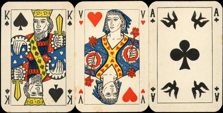 with the rarely seen deck, so complete with 32 cards, all in very good+ condition. Comes in a plastic box. € 65 SOLD Click HERE to see all the courts and aces and read more about it. |