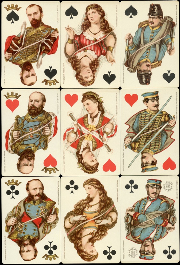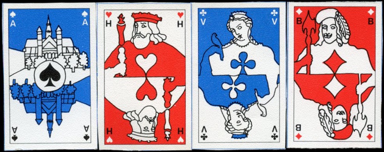 with the rarely seen deck, so complete with 32 cards, all in very good+ condition. Comes in a plastic box. € 65 SOLD Click HERE to see all the courts and aces and read more about it. |