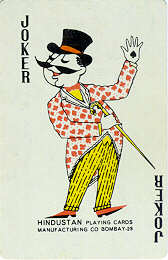 We've titled this expo "Gentlemen from the East", because it's remarkable how many Indian jokers portray "well" dressed characters, all wearing a hat............. almost gentlemen. We can only guess about the kind of sociological process that may have lead to this phenomenon, but we'll leave the speculating to anyone with a degree in psychology. And of course there are plenty of exceptions too.