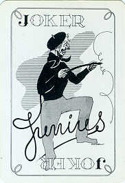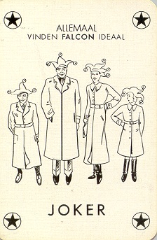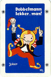 An advertising joker for Dobbelmann (Tobacco). The same joker was later also made by a Belgian manufacturer. On that joker the name of the designer (Kees Meys) is not printed, while on the SN version the signature is in the right bottom corner under the jokers foot.