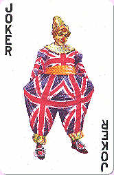 A note by Fred: This joker is from India and mocks the UK by dressing him in an English flag.