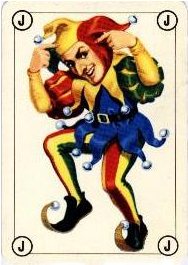 Editors note: This joker is from a deck, that was made by the Speelkaartenfabriek Nederland. The ape is the standard company joker, that was used from ca 1920 until 1932 as a single joker and until ca 1950 only in the "Nieuw Neerlandia" decks to accompany a later factory joker.