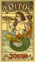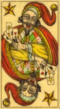 Editor's note: the joker comes from a deck that was printed by Fred. Piatnik & Sons from Vienna and published by the Wiener Waisenfond ca. 1915-1920. The deck and joker were designed by Nellie Stern, a member of the Wiener Werkstatte, famous for it's Art Deco designs.