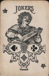 "Our club logo was chosen because it was a Joker holding a Joker. What could be more appropriate for a club with the name like 52 plus Joker? It was published by the Standard Playing Card Co. USA, c1915."