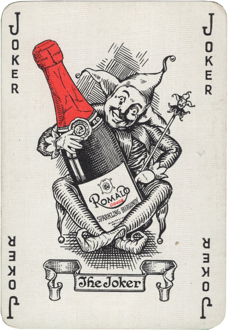 we see special designed jokers for these liquor advertising decks. This one