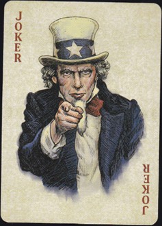 are 2 jokers, the first is uncle Sam, coming from the deck of American