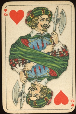 Each suit has its own color of cape on the courts: spades - brown, hearts -