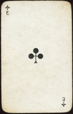 The deck had been used for piquet or skat or any game that only requires 32 cards. So the 2's to 6's hadn't been used. Hence the bright white C2 and back with the coat of arms of Denmark here. |