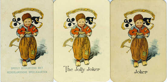 The "SPEELKAARTENFABRIEK NEDERLAND" has had several "standard" company jokers during the years of its existence. No NSF-deck has yet been found, that was accompanied by a joker.