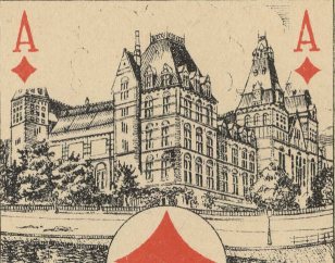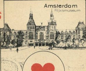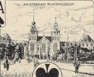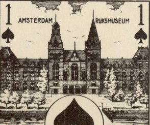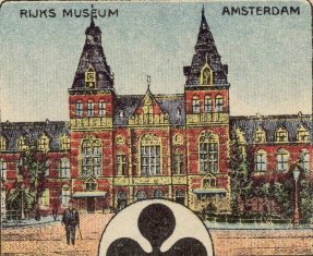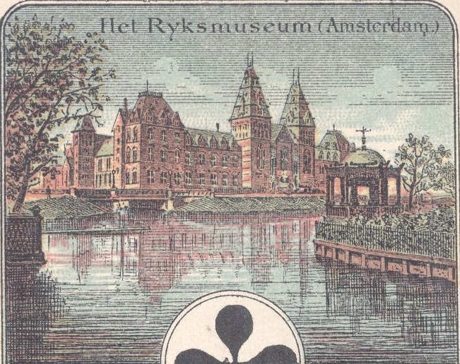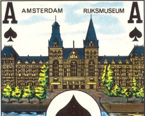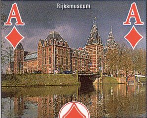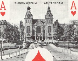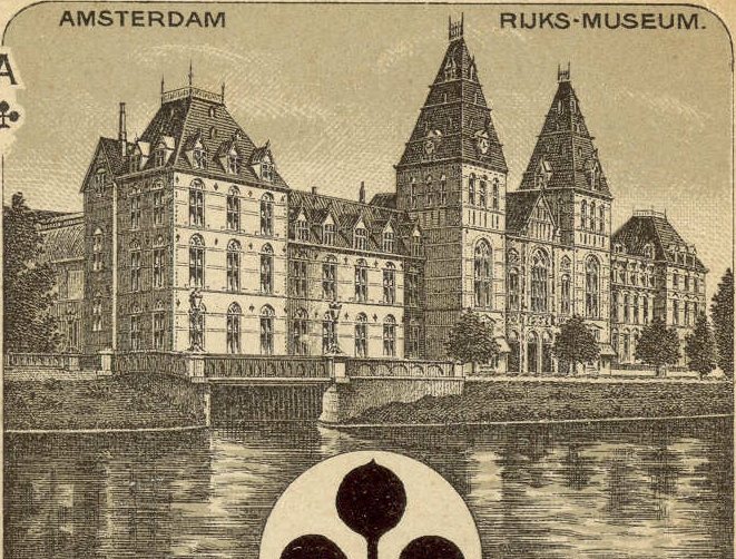 The front of the museum, as shown here on these aces of Clubs by Frommann & Morian (Germany, around 1890) is located at the Stadhouderskade, but on the other side it has a prominent position on the Museumplein (Museum square), nowadays among the Van Gogh Museum, the Municipal Museum , and the Concert Hall. |